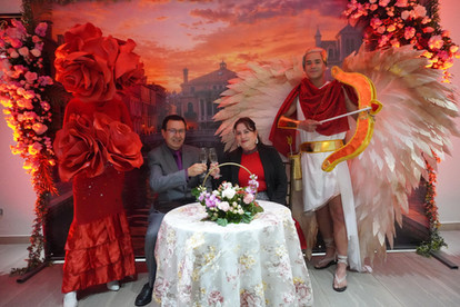 Desde el ingreso, los asistentes fueron recibidos por personajes inspirados en la magia veneciana, marcando el tono de una velada distinta. El backing temático, cuidadosamente ambientado, se convirtió en el escenario perfecto para fotografías y primeros brindis, mientras el Salón Cosme Renella se llenaba de expectativa y sonrisas.
